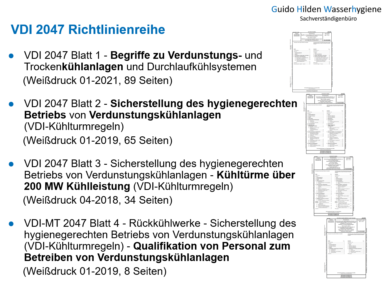 Die aktuelle VDI 2047 Richtlinienreihe besteht aus 4 Blättern: