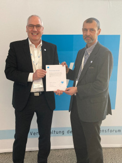 Auf dem Bild überreicht mir Thomas Wollstein die Berufungsurkunde.